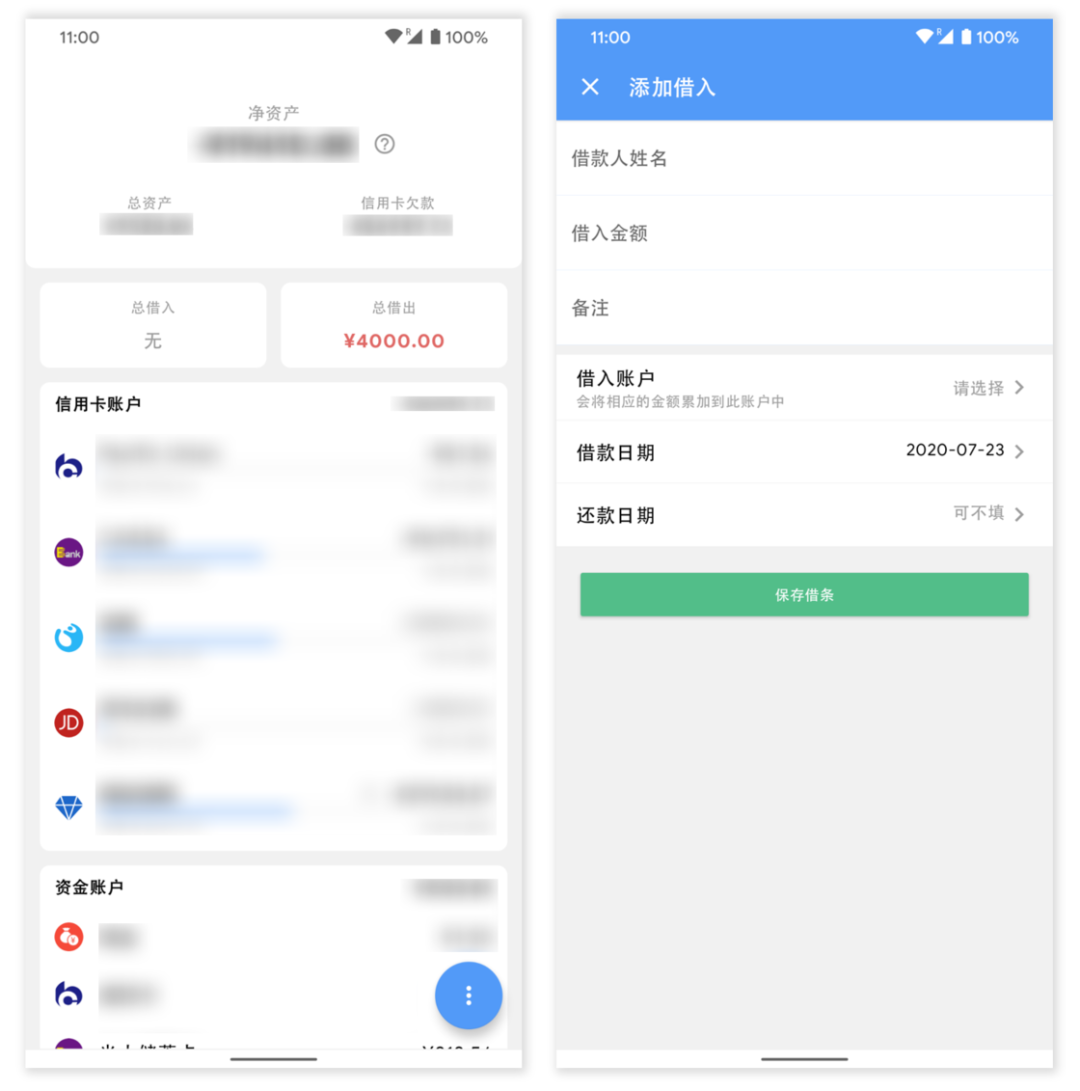 清晰的资产管理界面和借入、借出提醒