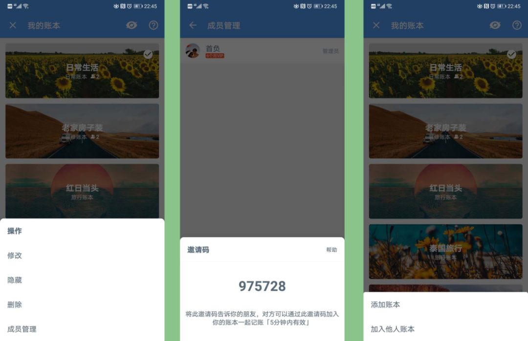 借助多账本系统带来的整理功能,钱迹同时也加入了「共享账本」这个设定,以邀请码的方式让多个钱迹用户同时在一个账本中记账:比如在一个团队项目中,不同的团队成员都有自己需要报销的内容,管理员就可以通过这种共享账本的方式来邀请团队成员,更加方便的收集团队中所有成员需要报销的内容,同时自动汇总相关的账本图表数据。