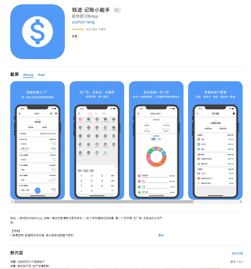 iOS 版钱迹已上架