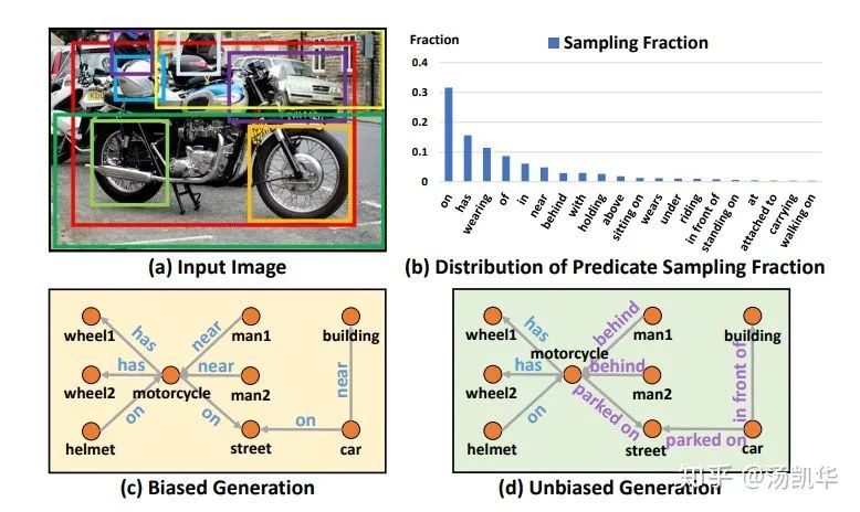 2019上半年跌跌撞撞地搞了很多乱七八糟的东西但都没work,尤其让我酸的是我上半年没做work的一个VQA的idea居然在同年ICCV看到一篇极其相似的文章,虽然对方取巧用了BERT硬是提了一点才中的,但真的没产出的时候看着别人发paper太酸了。话虽如此,取巧用idea以外的trick发paper还是不值得学习的。同年下半年,受含老师的影响(要求),我去看了很久的《The Book of Why》来寻找灵感,最后到了临近CVPR deadline,还是回归了自己的老本行场景图生成,投稿了一篇《Unbiased Scene Graph Generation from Biased Training》,并幸运的以(SA,SA,WA)的分数中了今年的CVPR 2020。结合我之前对SGG领域的了解,我认为目前SGG领域内关于不同message passing模型设计带来的提升已经趋于饱和,且这个研究方向目前来看已经愈发没有意义,因为由于自然存在以及数据标注中的bias和长尾效应(long-tail effect), 所谓的模型优化已经渐渐变成了更好的拟合数据集的bias,而非提取真正有意义的relationships。在此基础上,我在该工作中主要做了如下两件事:1)延续我去年在VCTree(CVPR 2019)中提出的mean Recall@K,设计了一个unbias的inference算法(注意不是training方法哦~),并希望让更多的人关注真正有意义的SGG,而不是去拟合数据集刷指标;2)由于之前通用的SGG框架neural-motifs已经落后于时代,我设计了个新的代码框架(已于Github开源)。不仅结合了最新的maskrnn-benchmark用于底层物体检测,同时集成了目前最全的metrics包括Recall,Mean Recall,No Graph Constraint Recall, Zero Shot Recall等,同时代码中为各种指标的evaluation统一了接口,希望后续有更多的研究者们可以设计出更有价值的metrics,从而使SGG领域不至于再只关注一个biased指标Recall而沦为灌水圣地。