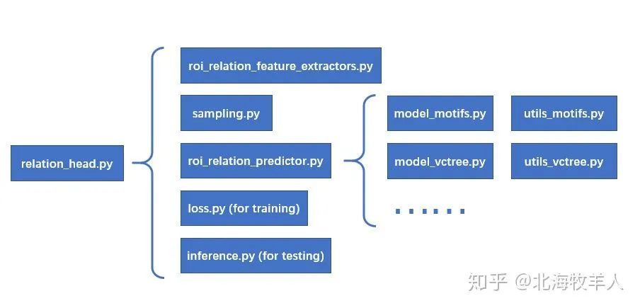 关于最主要的SGG部分,我将其设计为了一个roi_head,参考其他roi_heads,如box_head的设计,我将主要代码集中于"maskrcnn_benchmark/ modeling/ roi_heads/ relation_head"目录下,结构如下:
