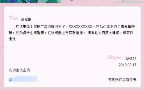 然后点击生成爱情。在浏览器上方获取连接。或者让人百度关键词一样可以出现