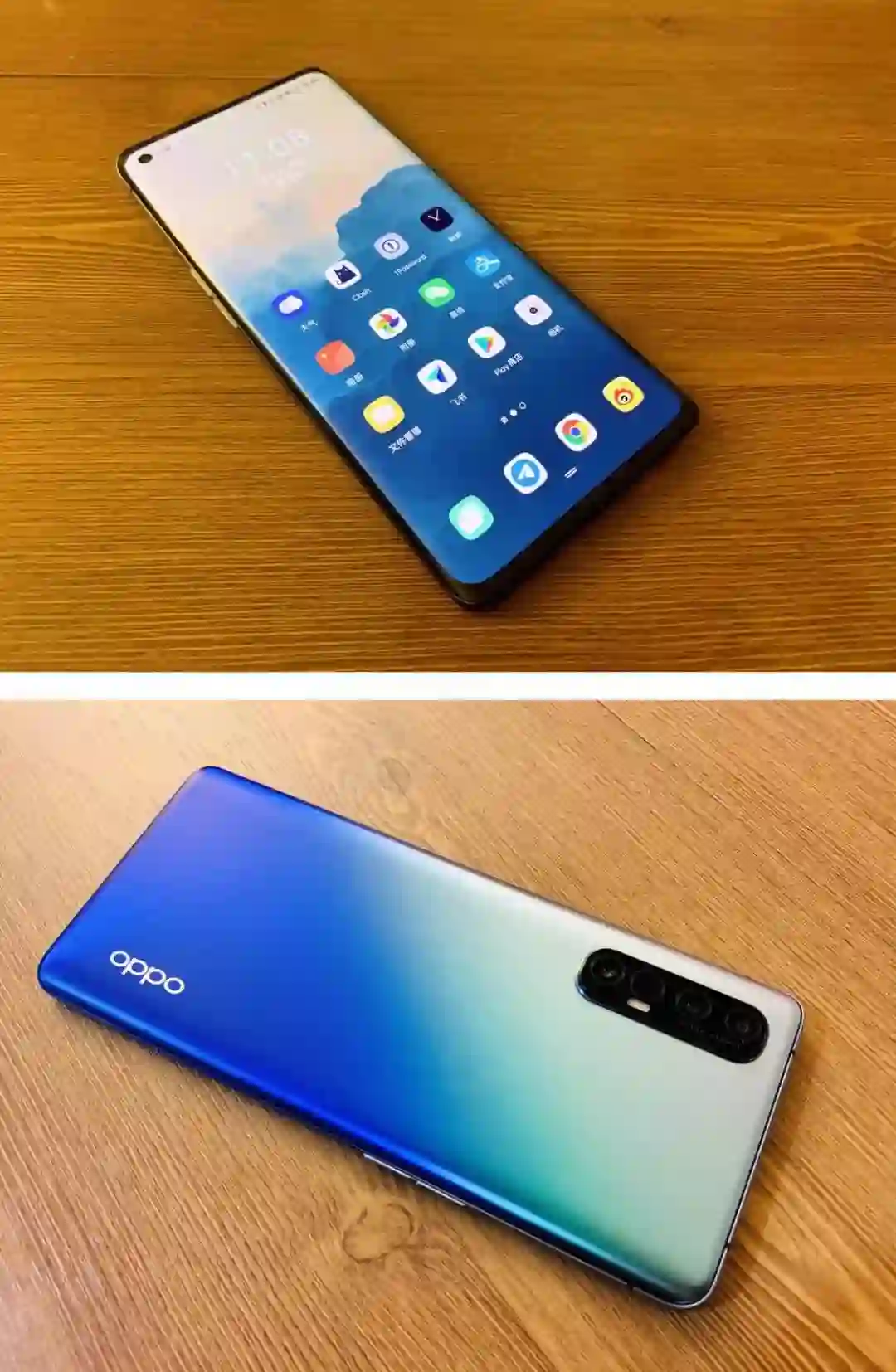 当我第一次拿起 Reno3 Pro 的时候,我还是熟练自如地发出了「Wow~」的声音,因为它实在是太轻了。由于我最近几个月都处于 iPhone XR(194g)+iQOO Pro 5G(217g)组合使用的状态下,所以面对 Reno3 Pro 171g 的重量,我的手臂真的得到了极大的释放。本次 Reno3 系列的外观舍弃掉了之前两代摄像头中置排列的竖条设计,而这个点在 Reno 一代发布会上官方花了很多时间来解释这个设计的意义,彻底舍弃了家族特征,这还是让我有点遗憾的。