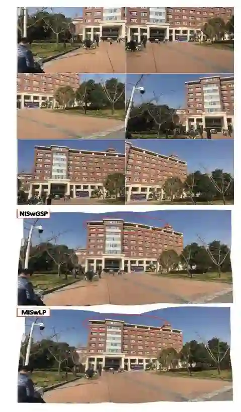 ▲NISwGSP算法和MISwLP图片拼接结果对比(6幅图)