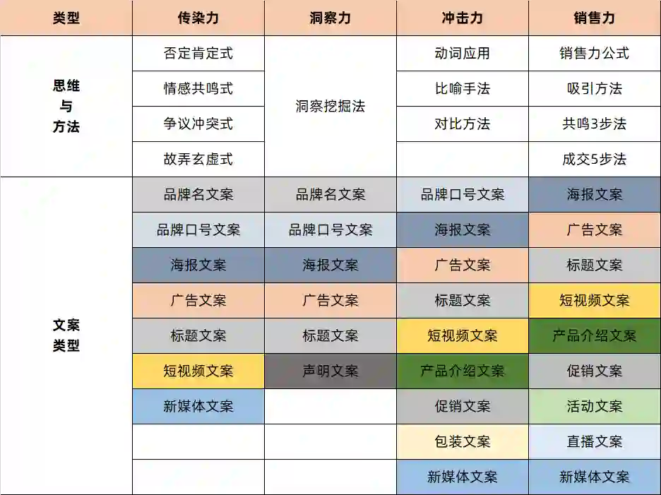 这样即便接到新品类的文案需求,亦或是在不同渠道需要做文案呈现,也能很快基于原有的能力去做一些解读,并快速上手。