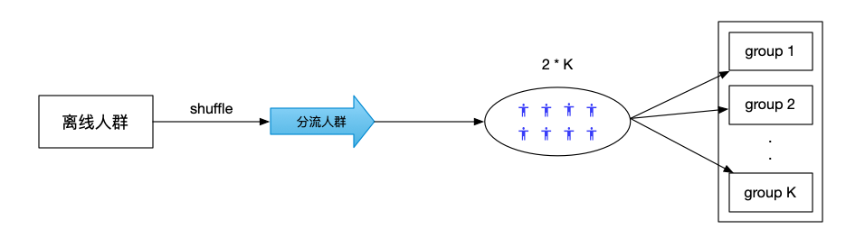 将人群shuffle打乱之后,对于人群的前2 * K(K是组数)的人进行随机分组,保证每个组中至少有两个样本之后再开始进行Adaptive分组。