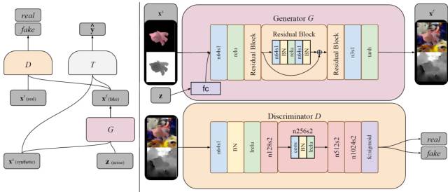 然而,渲染图像与真实图像之间有很大差异(比如背景差异),直接用渲染图像训练得到的深度学习模型并没有产生很好识别性能。本文将渲染图像和真实图像看作两个领域,并结合当前流行的生成对抗网络修正渲染图像,得到更加贴近真实图像的渲染图像(如下图所示:加上类似的背景)。最后再利用这些修正后的渲染图像训练深度学习模型,取得了很好效果。