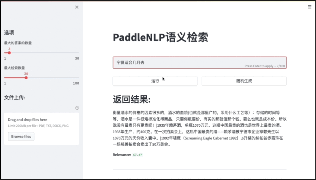 该检索系统基于端到端问答技术RocketQA,该模型结合知识增强的预训练模型ERNIE 3.0和百万量级的人工标注数据集 DuReader训练得到,效果优异。该模型可以在Pipelines一键调用,大大降低问答系统模型建模成本。