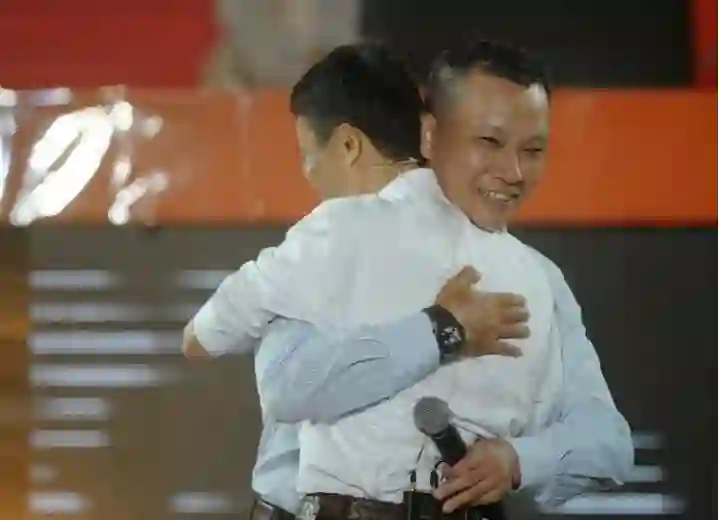 2009年,淘宝十周年欢庆晚会上,马云扑到了陆兆禧的身上,两人紧紧拥抱在一起。