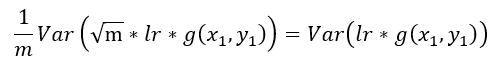 等价于SGD的梯度方差,可以看到batch size增大m倍,相当于将梯度的方差减少m倍,因此梯度更加准确。