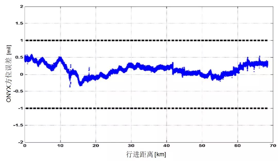 2)航向误差<0.5 mil sec RMS。