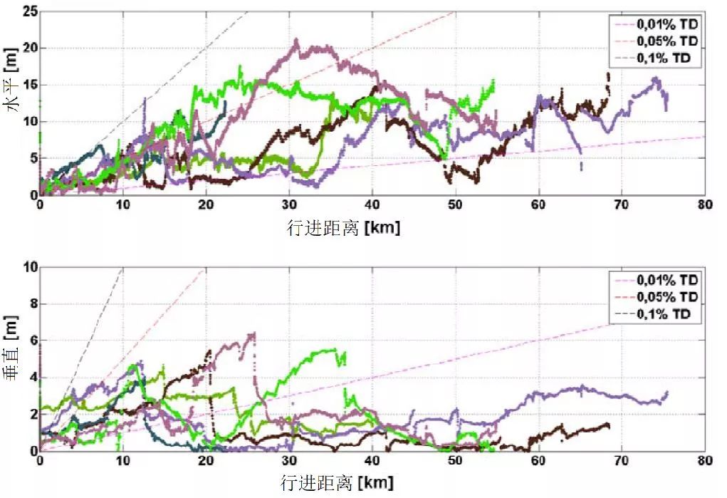 1)无GPS的水平位置误差<0.05%DT;