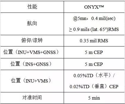 赛峰集团已展示出的ONYX™导航精度如下: