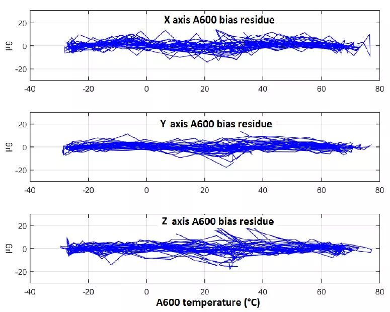 图14 ONYX™ A600加速度计热偏压残余随温度的变化