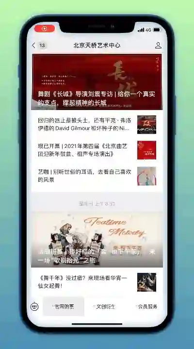 北京天桥艺术中心主要以音乐剧为主,近期有《赵氏孤儿》,还有一些舞剧如《永不消逝的电波》、话剧《我不是潘金莲》等,此外还有演唱会、芭蕾及交响音乐会,可以说是一个综合性剧场。