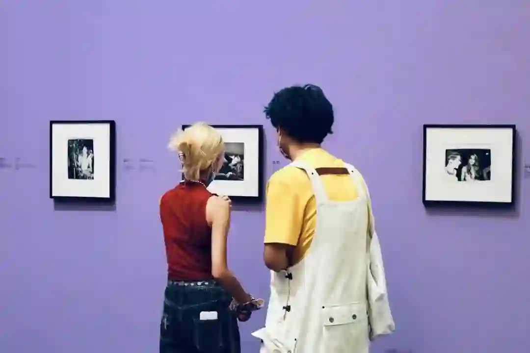 有时候我会很喜欢拍一些看展的人。我看着一对父女在看画里的人看着天空。人类的一些套娃行为。
