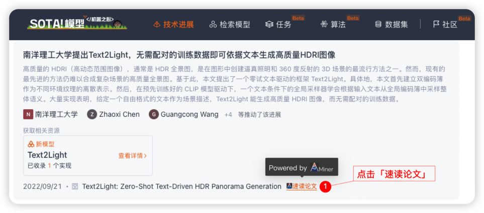 添加了「速读论文」的功能。用户可在SOTA!模型平台中发现开发资源的同时,