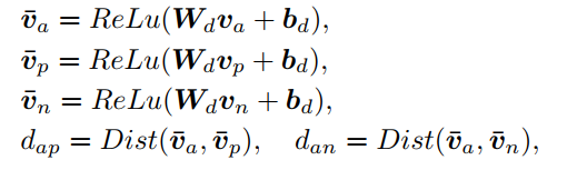 除此之外,为了进一步准确建模句子关系的关系,作者还将对比学习引入到这个模块中,由于模型最终会学习到一个句子对的语义关系表示向量,因此,作者通过对比学习要求模型学习的语义关系表示向量在表示相同语义关系的时候要近一些,在表示不同语义关系时要距离的远一些,从而使得模型能够真正学习到与关系相关的一些不变特征,充分发挥对比学习的作用。具体而言,作者首先利用 MLP 将三个不同输入的语义关系表示向量映射到同一空间,然后分别计算正例对和负例对之间的距离,用于最后的计算。
