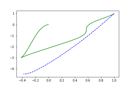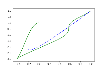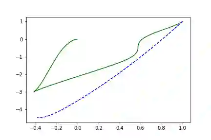 true_A2 = torch.tensor([[-0.1, -0.5], [0.5, -0.1]])true_B2 = torch.tensor([[0.2, 1.], [-1, 0.2]])class Lambda2(nn.Module):def __init__(self, A, B):super(Lambda2, self).__init__()self.A = nn.Linear(2, 2, bias=False)self.A.weight = nn.Parameter(A)self.B = nn.Linear(2, 2, bias=False)self.B.weight = nn.Parameter(B)def forward(self, t, y):xTx0 = torch.sum(y * true_y0, dim=1)dxdt = torch.sigmoid(xTx0) * self.A(y - true_y0) +torch.sigmoid(-xTx0) * self.B(y + true_y0)return dxdt