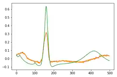 点为采样的噪声轨迹,蓝线为真实的轨迹,橙色线为恢复的和插值的轨迹