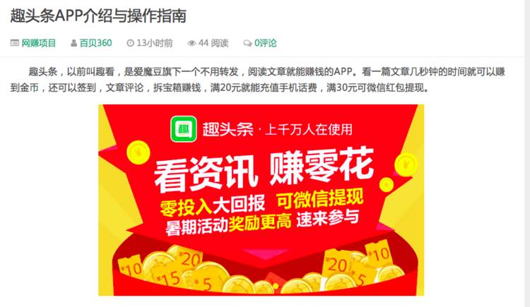 趣头条吸引读者的方式很简单——发钱,直接给读者发钱而不是给作者发钱。