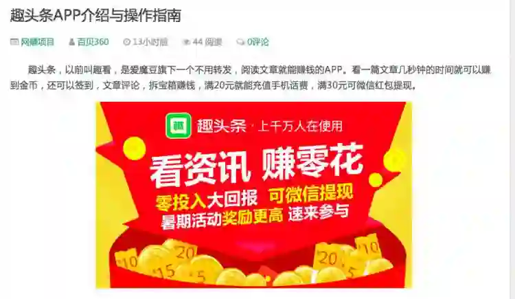 趣头条的模式其实并不新鲜,甚至可以追溯到二十世纪末的「赚钱冲浪」。那时流行一种模式,用户在自己的浏览器上安装一个工具条,工具条会滚动显示一些广告,显示到一定量之后会直接给用户奖励。