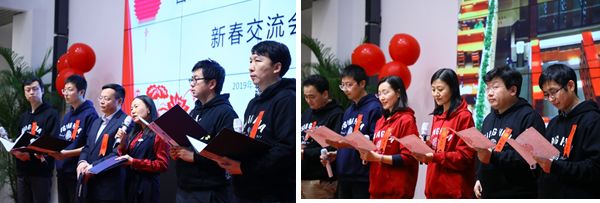在演出环节,首届创新领军工程博士们采取诗朗诵、歌曲串烧等形式,迎接2019年的到来。