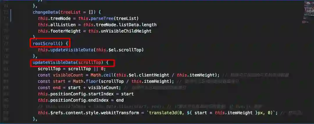 然后我们通过滚动条的位置来计算我们应该要取哪些数据。