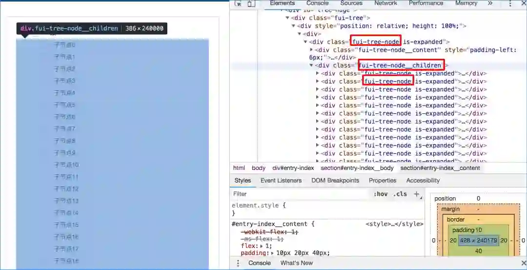 发现在递归的 tree-node 组件里面有很多样式的计算,10000 条子节点就需要计算 10000 次。