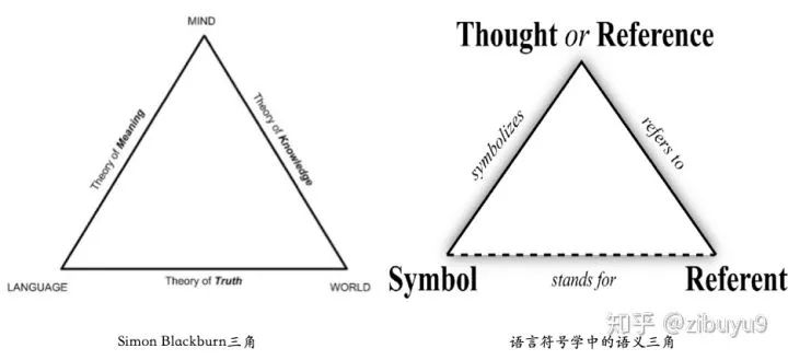 很多学者通过世界、心智和语言的三角形来表述语言的地位,这在索绪尔提出的能指和所指的概念中已初见端倪,哲学中的认识论和语言哲学也是探讨这三者的关系。自然语言理解还没有能力考虑哲学关心的这些问题,不过也能看出,语言作为人类认识世界的产物和工具,必然不是对客观世界的简单映射,而带有人类主观认识的色彩,也受到人脑机能的影响和约束。