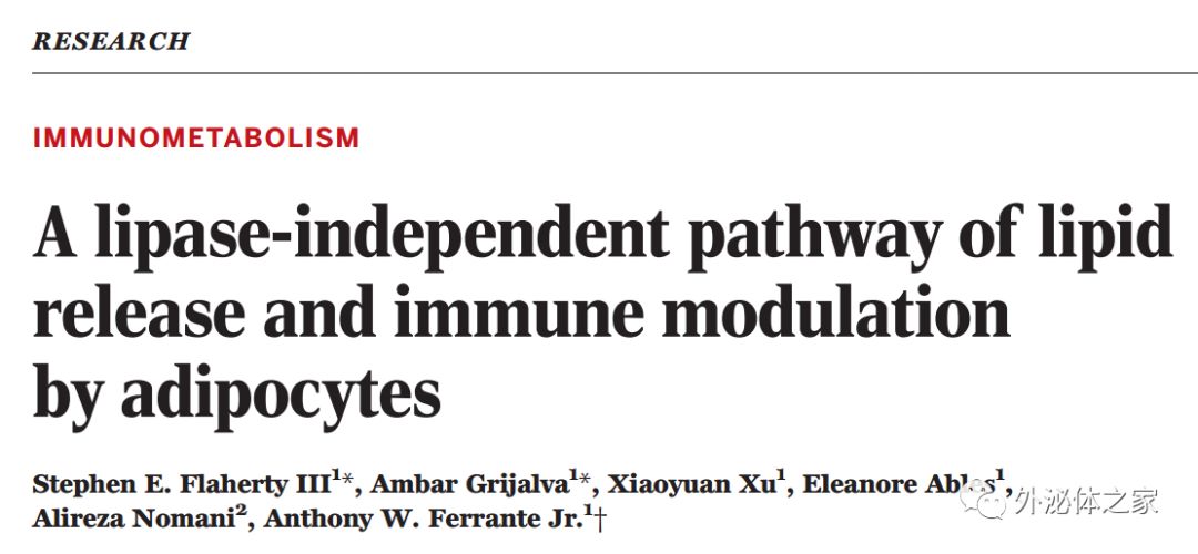 StephenE. Flaherty III, Ambar Grijalva, Xiaoyuan Xu, Eleanore Ables, Alireza Nomani, Anthony W. Ferrante Jr. A lipase-independent pathway of lipid release and immune modulation by adipocytes. Science 01 Mar 2019: Vol.363, Issue 6430, pp. 989-993 DOI: 10.1126/science.aaw2586