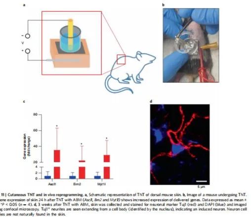 作者称,这种「组织纳米转染技术」(tissue nanotransfection, TNT)所需要的设备是可以标准化批量生产的。「组织纳米转染技术」的最大优点是不需要用病毒作为载体,从而最大限度地降低了炎症反应和细胞死亡的风险。