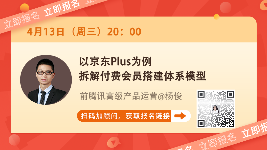 所以4月13日(周三)晚8点,开展一期免费的课程,以京东Plus为例,直播教运营人如何搭建付费会员体系!