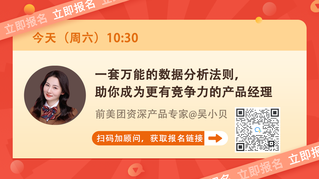 那对于产品经理来说,如何掌握数据分析能力/思维,去提升个人竞争力呢?扫描下方二维码,产品专家在直播课给你解惑~