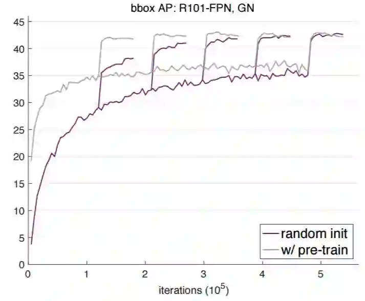 我们的实验表明,GN 和 SyncBN 都允许检测模型从头开始训练。