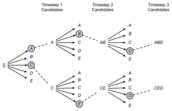 以上就是Beam Search的基本概念,下面我们解析一种高效率实现方式。