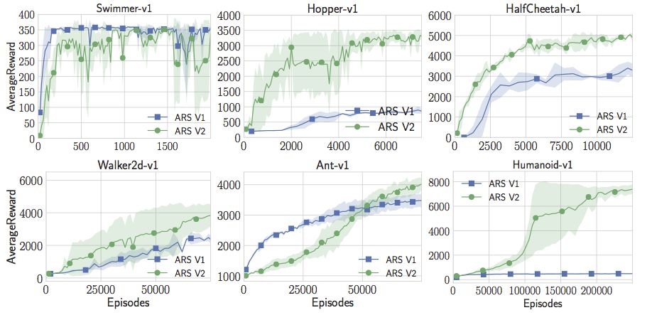 通过一些小调整得到的随机搜索结果胜过了MuJoCo任务中的所有其他方法,并且速度更快。论文和代码都已公布。