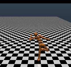 即使是表现最好的模型(奖励达到11600),如下图所示,这种看起来很蠢的步态也不可能应用在现实中: