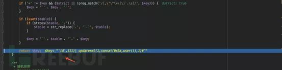 到这里,看到$key满足if条件,然后两边加了个 ` 号。