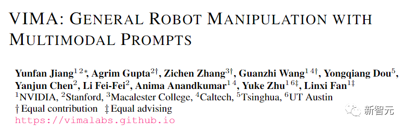 最近来自英伟达、斯坦福大学、玛卡莱斯特学院、加州理工、清华大学和得克萨斯大学奥斯汀分校的研究人员共同提出一个基于Transformer的通用机器人智能体VIMA,利用多模态的prompt,实现极高的泛化性能,能够处理大量的机器人操作任务。