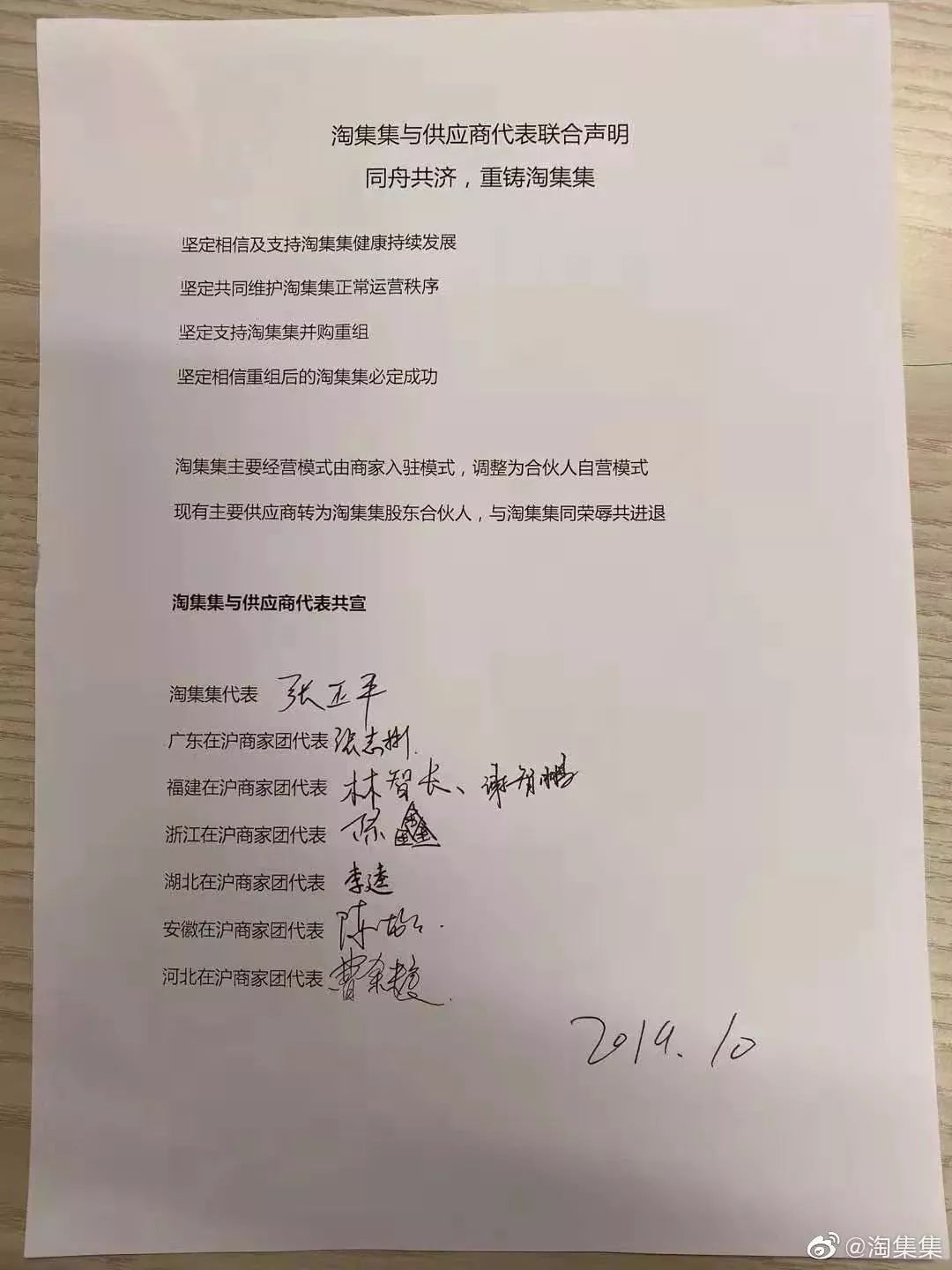 这种做法其实也是为了安抚讨债人,如果找到接盘侠,供应商就能出售自己手里的股份,从而变相从淘集集手里拿回欠款。