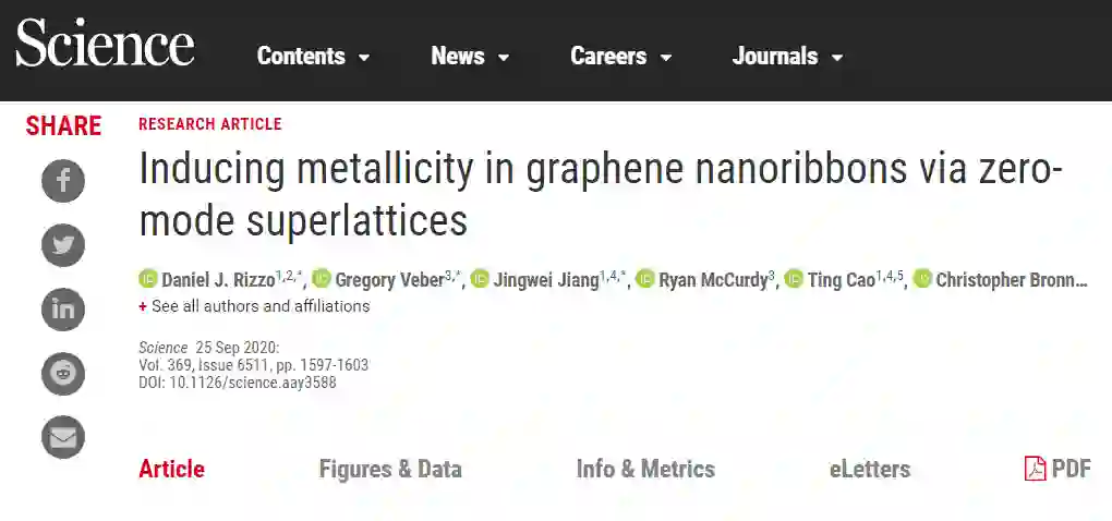 一旦组装完毕,新的纳米带的电子状态是一种金属,就像Louie预测的那样,每个部分都贡献了一个导电电子。最终的突破可以归因于纳米带结构的微小变化。