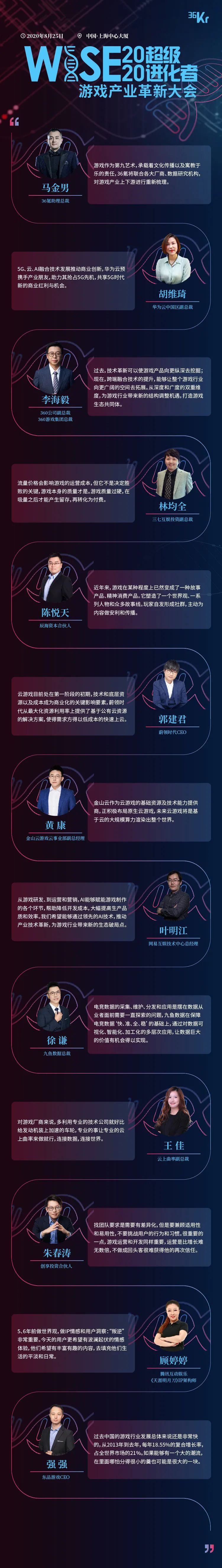 8月25日,WISE2020超级进化者大会在上海中心举行,主题为“游戏产业革新大会”的分会场吸引到了中国游戏及相关产业数百人参与。其中,演讲嘉宾来自于云游戏技术、游戏研发、游戏发行、游戏领域投资等多个相关行业,从游戏技术发展、游戏渠道与出海创新、精品游戏与电竞未来三个维度,阐述了各自的见解与看法。