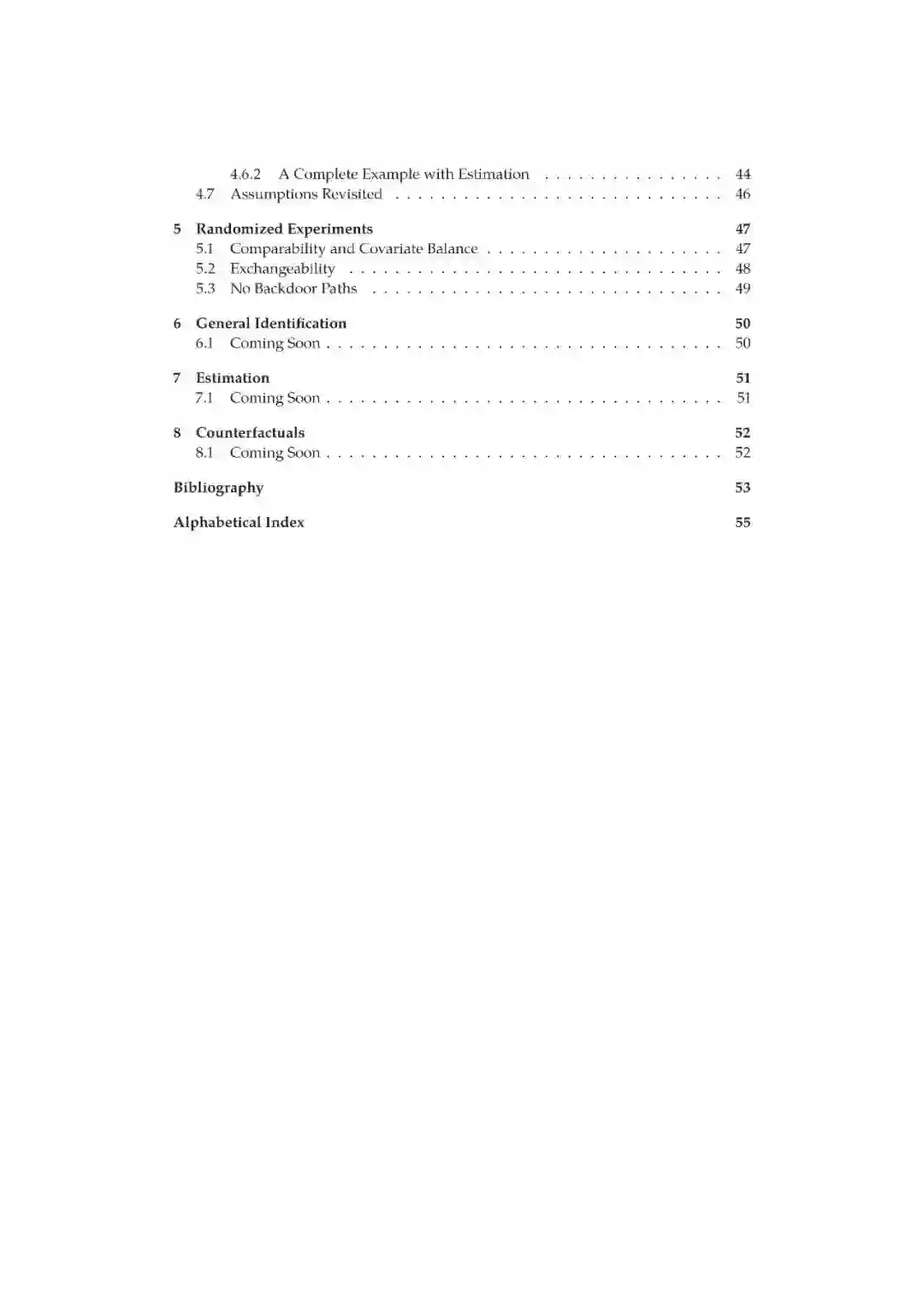 识别与评估。因果效应的识别是因果推论所独有的。这是一个有待解决的问题,即使我们有无限的数据。然而,因果推理也与传统统计和机器学习共享估计。我们将主要从识别因果效应(在第2章中,4和6)之前估计因果效应(第7章)。例外是2.5节和节4.6.2,我们进行完整的例子估计给你的整个过程是什么样子。