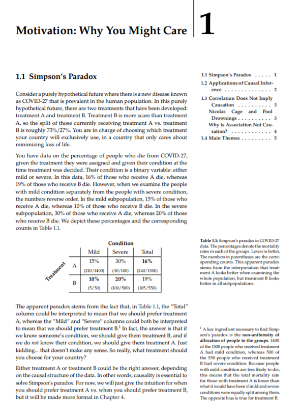 统计与因果。即使有无限多的数据,我们有时也无法计算一些因果量。相比之下,很多统计是关于在有限样本中解决不确定性的。当给定无限数据时,没有不确定性。然而,关联,一个统计概念,不是因果关系。在因果推理方面还有更多的工作要做,即使在开始使用无限数据之后也是如此。这是激发因果推理的主要区别。我们在这一章已经做了这样的区分,并将在整本书中继续做这样的区分。