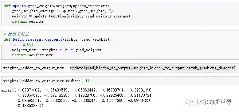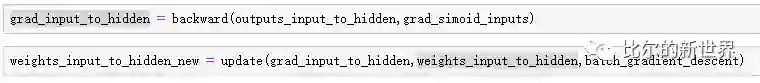 现在可以开始更新连接输入层和隐藏层之间的参数了,计算过程和更新隐藏层和输出层之间的参数一样。