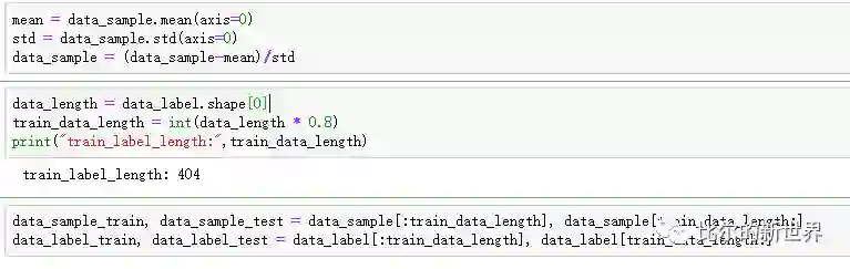 对数据进行减均值除方差的标准化处理,这样做有助于神经网络的收敛(学习),然后使用4/5的数据做训练数据,剩下的1/5数据做测试数据: