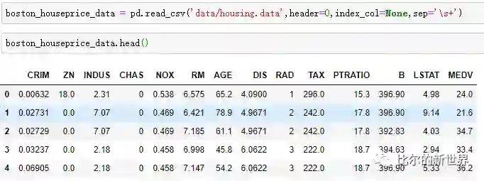本文将预测波士顿郊区自住房屋价格的中位数。使用波士顿房价(BostonHousePrice)数据集,一部分数据用于训练模型,另一部分数据用于验证模型的效果。数据下载地址:https://archive.ics.uci.edu/ml/machine-learning-databases/housing/