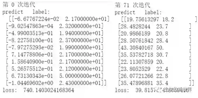 预测的时候,输入原始数据信息到输入层,经过中间层的数学计算,得到输出,即房屋均价;训练的时候,先进行前向传输预测得到房屋均价输出,然后根据输出与实际房屋均价的差距,进行后向传播,这个过程会调整网络之中的参数,从而使得下一次预测更为准确。