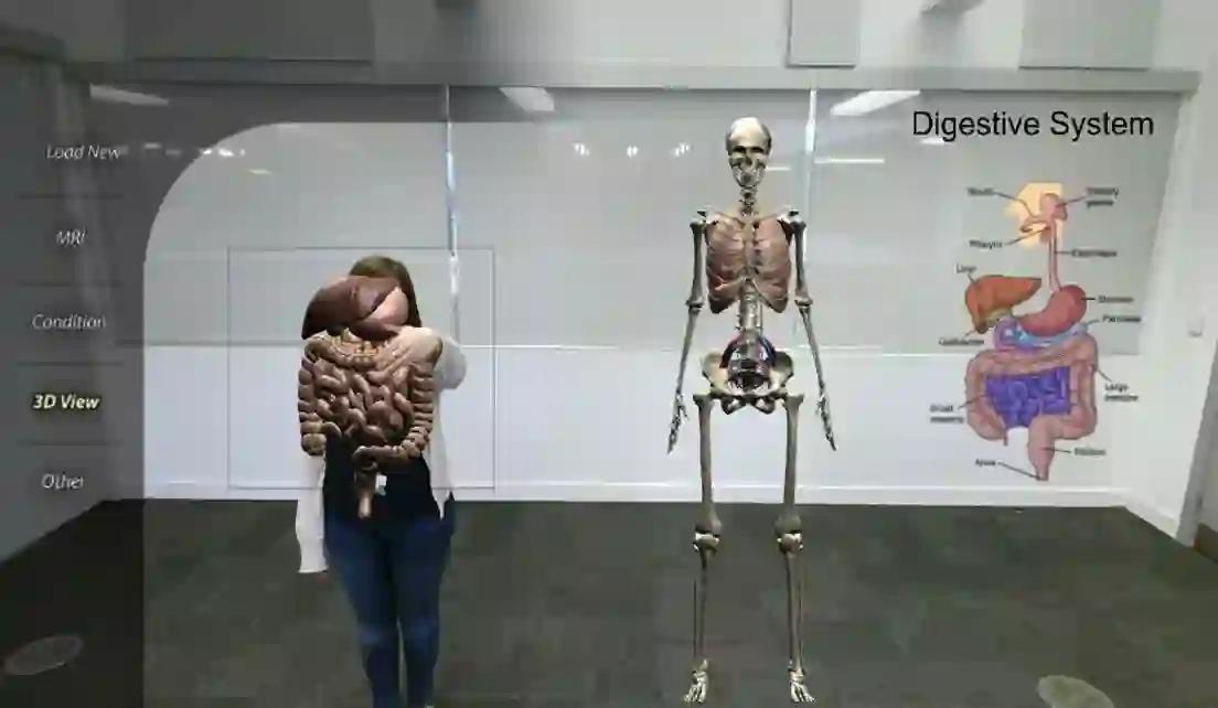 六月时,伯明翰城市大学数字媒体技术实验室(DMT Lab)公布了他们正在开发的医疗MR新系统,可以帮助医生可视化患者身体,并能使用徒手动作与虚拟模型进行交互来查看患者各项身体数据。